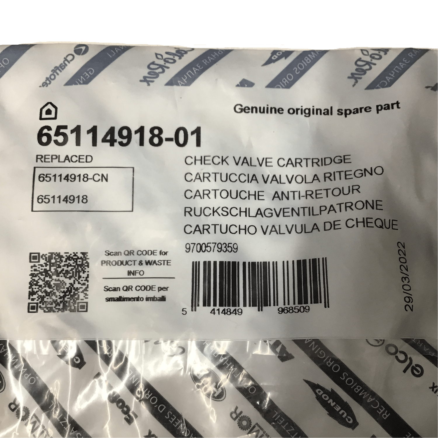 65114918-01 Check Valve Cartridge